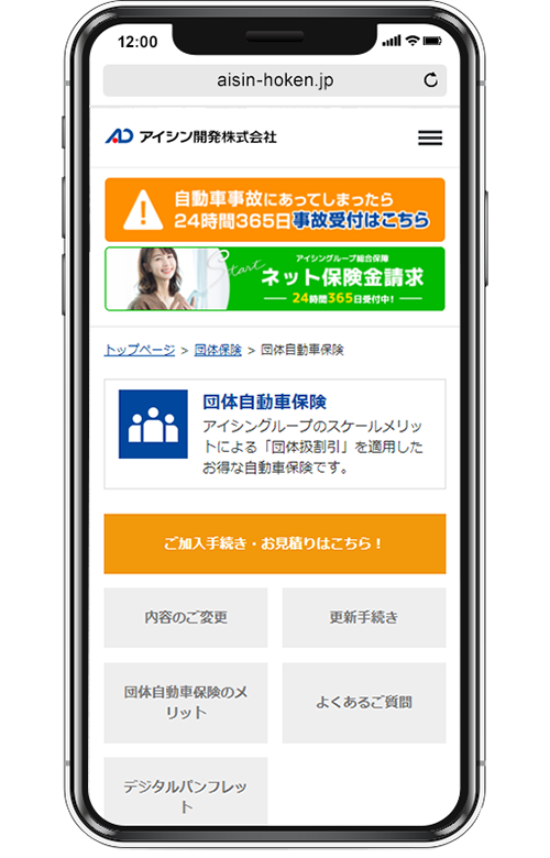 取扱商品、各保険の名称や補償内容は引受保険会社によって異なりますので、ご契約(団体契約の場合はご加入)にあたっては、必ず重要事項説明書や各保険のパンフレット(リーフレット)等をよくお読みください。